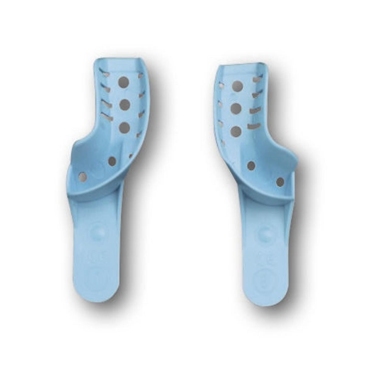 Disposable afdruklepels gemaakt van sterk, lichtblauw kunststof. De lepels vervormen niet tijdens het maken van de afdruk en hebben een vast heft. De afdruklepels zijn thermoplastisch dus eenvoudig door middel van verhitting te vervormen of door trimmen te corrigeren.