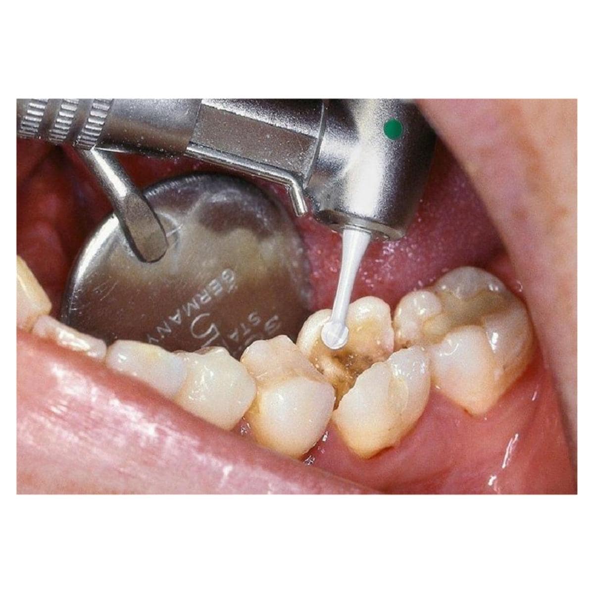 Efficiënte boor gemaakt van keramiek voor een beter tactiel gevoel en bijzonder geschikt om een beter onderscheid te bepalen tussen gezond en carieus dentine.