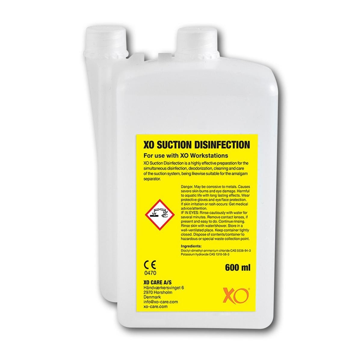 XO Suction Disinfection is een intensief werkzaam concentraat voor gelijktijdige de desinfectie, desodorisatie, reiniging en onderhoud van alle tandheelkundige afzuiginstallaties en de spittoonschaal en is geschikt voor alle amalgaamafscheiders.