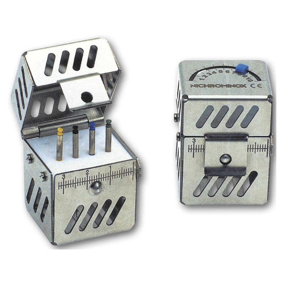 Endo cassette met sterimeter voor de opslag van NiTi endo instrumenten. Endo cassettes kunnen worden gesteriliseerd in een autoclaaf, hete lucht of in een gassterilisator. Met sterimeter