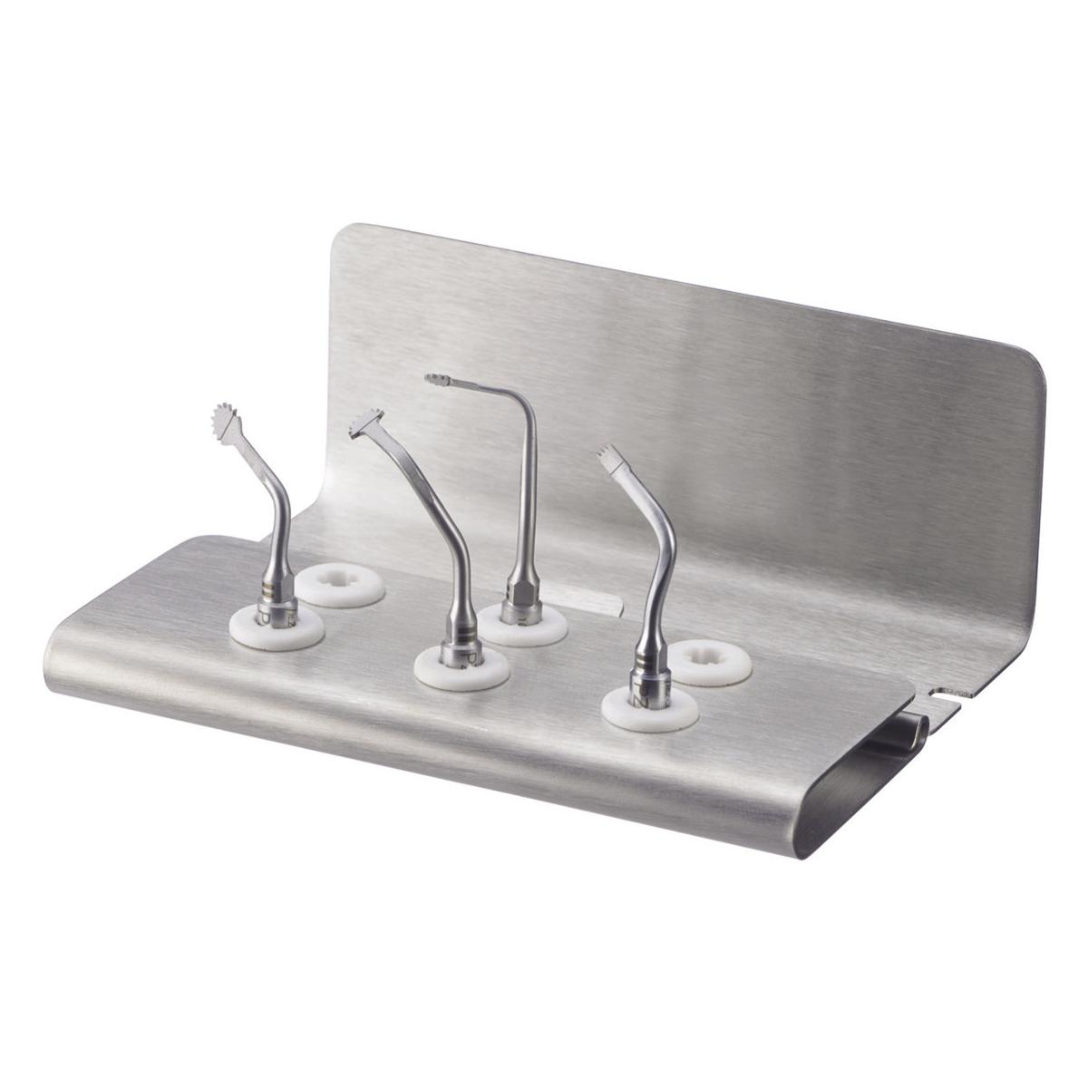 Tips PZ1, PZ2L, PZ2R, PZ3, een autoclaveerbare metalen houder en een autoclaveerbare universeelsleutel.