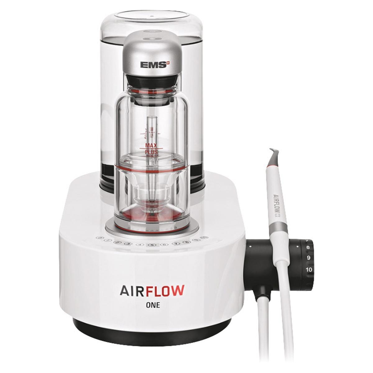 De AIRFLOW ONE is een innovatie van EMS gebaseerd de succesvolle "Guided biofilm Therapy" voor behandelaars die reeds zijn uitgerust met een Piezon module op de behandeleenheid. Het apparaat is ontworpen voor intensief professioneel gebruik en wordt gekenmerkt door zijn ergonomie, hoge precisie, het gemak van onderhoud en compatibiliteit met de hoogste hygiëne-eisen. Toepassingen: AIRFLOW sub- en supragingivaal, PERIOFLOW Perio en implantaten.