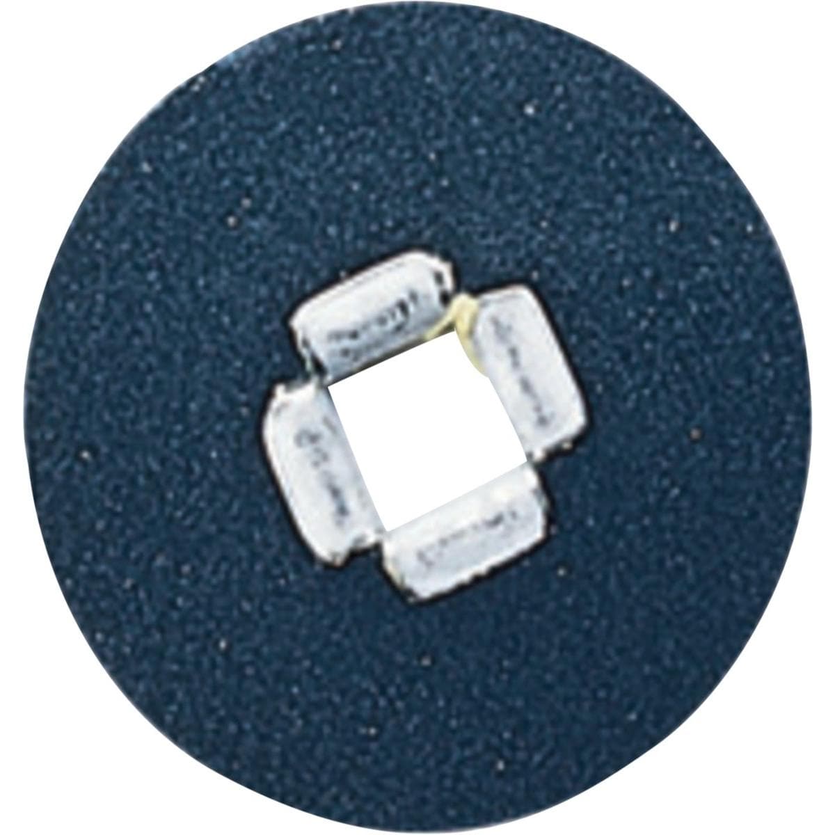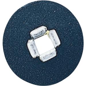 Flexibele polijstschijven met vierkante kern en aluminiumoxide coating in 4 verschillende schuurkwaliteiten (grof tot superfijn).