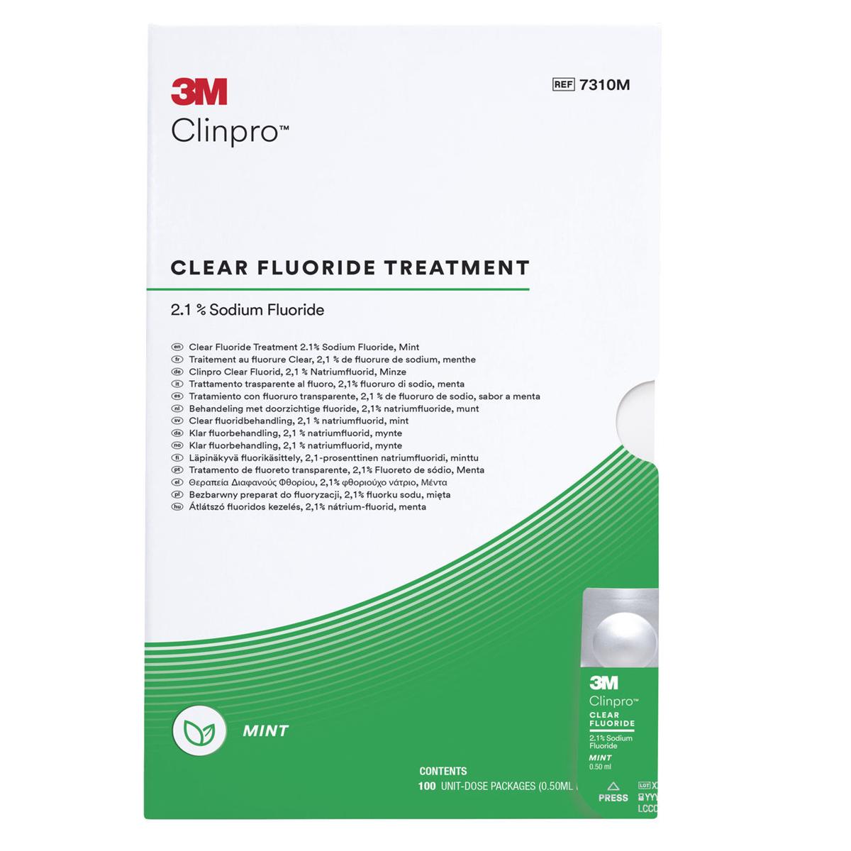 3M Clinpro Clear Fluoride is een harsvrije formule op waterbasis. De 2,1% natriumfluorideoplossing bevat oplosbare fluoride-ionen, die onmiddellijk op het element worden afgegeven. Hierdoor zorgt Clinpro Clear Fluoride voor een vergelijkbare, of zelfs hogere fluoride-opname dan een traditionele 5% fluoridelak.
