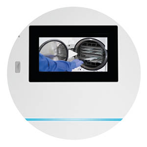 Images haute résolution font de l'écran 7'' un outil précieux pour tous les utilisateurs. Des vidéos d'instruction simples fournissent des instructions importantes sur l'utilisation et l'entretien de l'autoclave. En outre, les rapports de cycle stockés dans la mémoire de l'autoclave peuvent être visualisés sur l'écran..