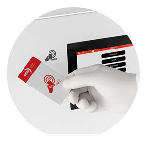 De NFC-sensor vereenvoudigt de workflow van de assistent. Het activeren van de gebruikers-ID zorgt ervoor dat alleen geautoriseerd personeel toegang heeft tot de machinefuncties. Om te activeren breng je gewoon de NFC-kaart, die bij de sterilisator is geleverd en aan de gebruiker is gekoppeld, naar de machine.
