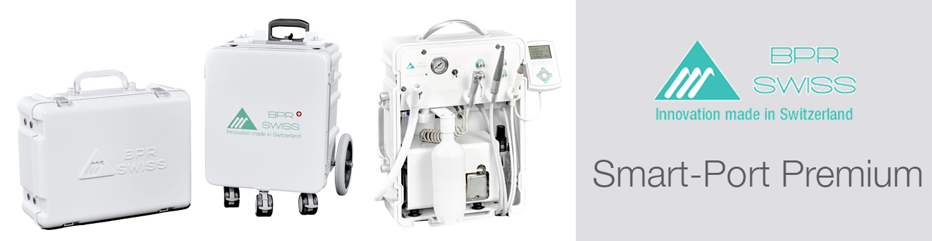 De mobiele dentale unit Smart Port Premium van BPR Swiss is de perfecte partner voor als u op verplaatsing tandzorgen wil verlenen. Een volledige behandelunit inclusief compressor en afzuiging (300l/min) worden samengebracht in een compact geheel van slechts 12 kilo. De geïntegreerde elektrische motor en scaler, beiden uitgerust met LED-verlichting, maken integraal deel uit van het geheel. De Smart Port bestaat in 2 versies. En de Premium versie is zelfs uitgerust met een digitaal controlesysteem met 30 vrij te selecteren programma’s voor o.a. de draaisnelheid en torque van de instrumenten. De efficiëntie van de elektrische micromotor, scaler en afzuiging verschillen niet van een permanent geïnstalleerde unit in de praktijk.