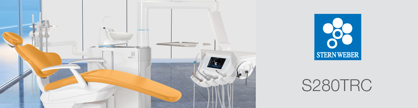 Avec la série Stern Weber TRC le groupe d'eau est monté au sol et le fauteuil est suspendu. L'espace supplémentaire en dessous du fauteuil du patient favorise une meilleure interaction et communication au sein de l'équipe.