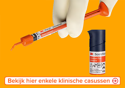 Ervaar zelf de kracht van dit nieuwe, universele duo 3M™ RelyX™ Universal Composietcement en 3M™ Scotchbond™ Universal Plus Adhesief en vereenvoudig uw directe en indirecte workflows.