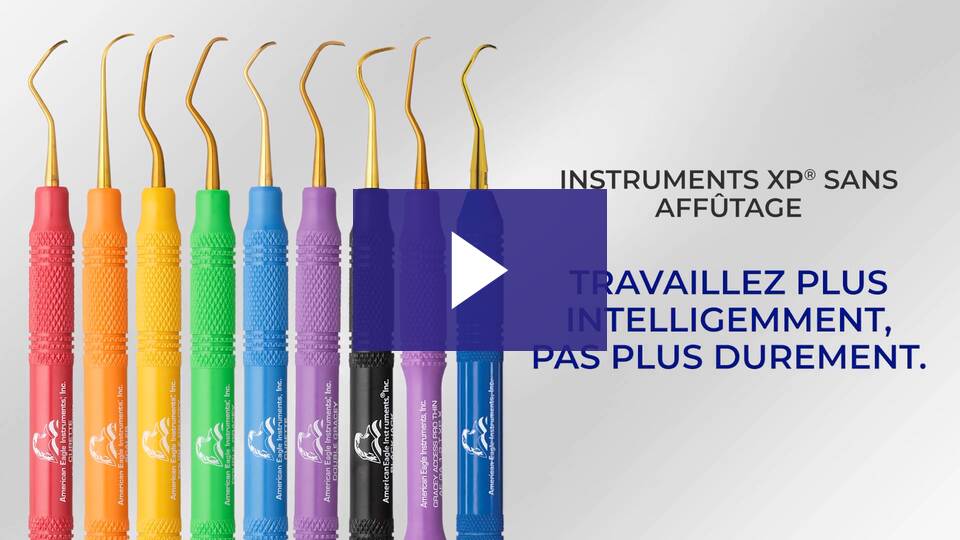 American Eagle est connu pour sa technologie de surface XP Technology®, qui a révolutionné le traitement parodontal. L'alliage de surface breveté de nos instruments XP crée un bord tranchant comme une lame de rasoir, qui reste affûté plus longtemps que les instruments manuels comparables avec des extrémités de travail en carbone ou en acier inoxydable. La technologie XP est la dernière innovation en matière d'instruments dentaires manuels et vous offre des instruments que vous n'avez plus besoin d'affûter.