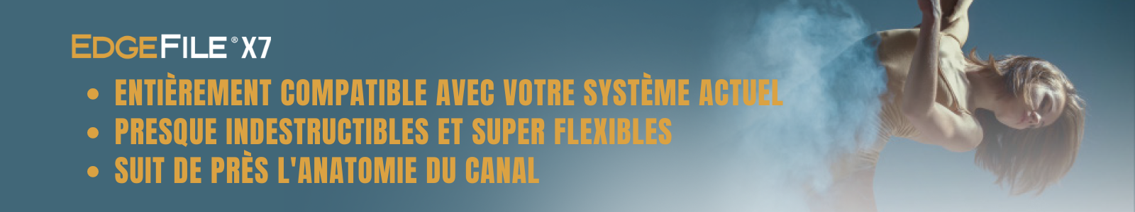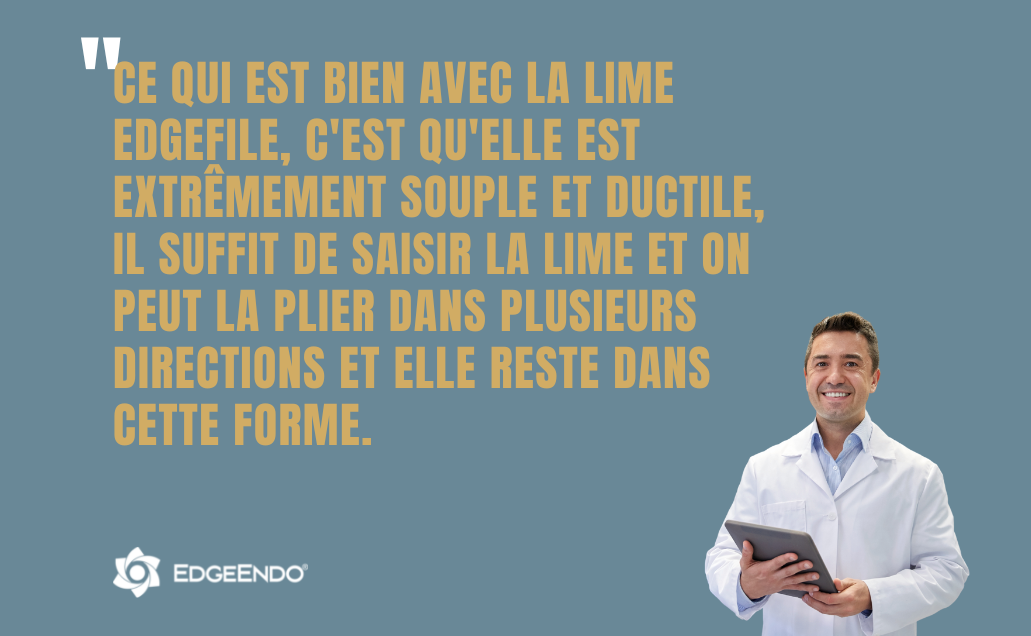 Le révolutionnaire EdgeFile® X7 utilise notre propre FireWire™ NiTi flexible forgé avec notre processus de traitement thermique exclusif. L'alliage FireWire™ NiTi améliore la résistance et la flexibilité.