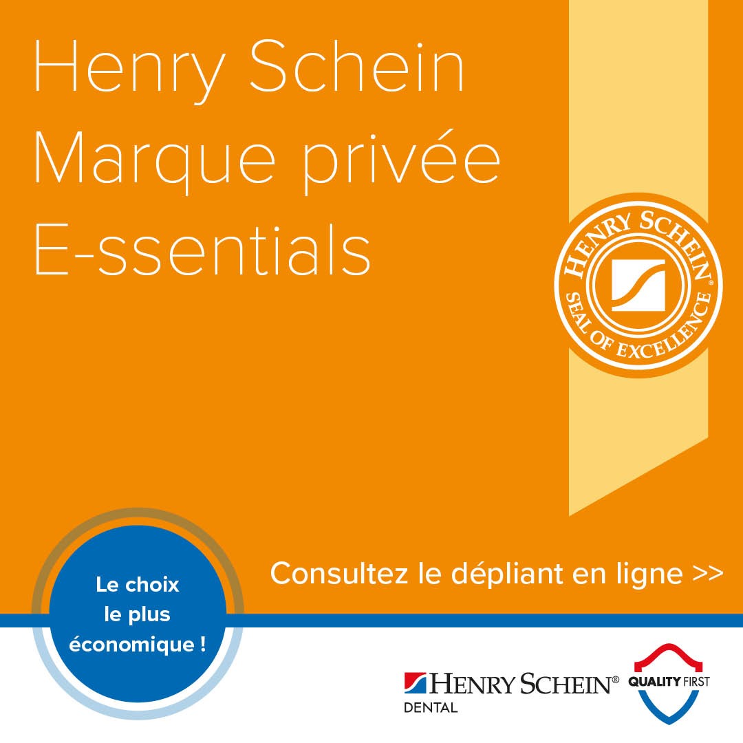Découvrez une sélection de nos produits de la marque privée Henry Schein dans notre nouveau flyer E-ssentials ! Ces produits sont dotés du 'Label d'excellence'. Cela signifie que ces produits peuvent être renvoyés s’ils ne vous conviennent pas.